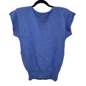 VTG Liz Claiborne Silk Blend Sweater Short Sleeve Blue Purple Periwinkle Med 568