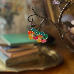 Vintage rainbow flower enamel earrings