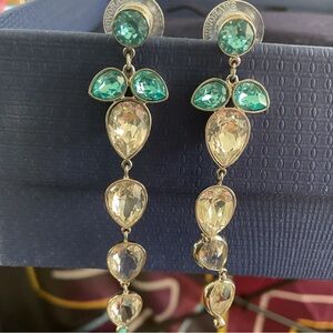 Dazzling Swarovski earrings with emerald and gold crystals. Ideal for a luxurious touch.