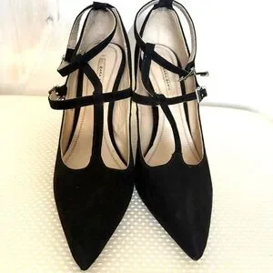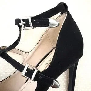 Zara Basic black pointy high-heel shoes with straps. The buckle straps are silver and the heel is 4 inches. Perfect for a stylish look. Gently worn a few times.