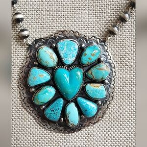 Incredible Large Turquoise Heart Necklace By Navajo Artist Kathleen Yazzie