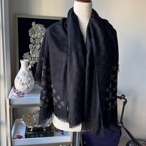 Elevate your style with this luxurious black and gold scarf. Perfect for adding a touch of elegance to any outfit.