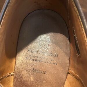 Classic American dress shoes from Allen Edmonds, featuring the iconic Strand cap toe design in rich brown suede. A versatile option that works equally well with business attire or smart casual outfits. Quality construction and timeless styling make these a staple pair for any wardrobe.