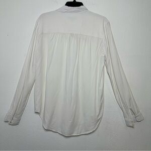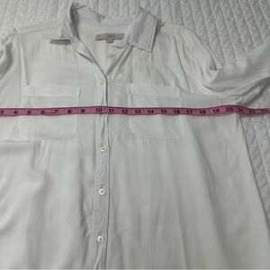 LOFT 100% Viscose White Button-Down Shirt with Front Pockets