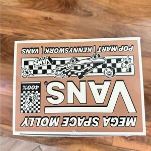 Vans with Mega Space Molly design. Features space elements and cartoon graphics.