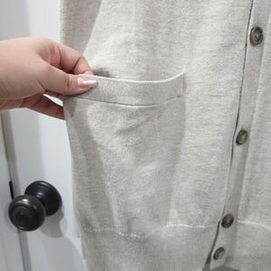 Stay stylish and comfortable with this beige cardigan sweater. Perfect for layering, this sweater offers a classic look for any occasion.