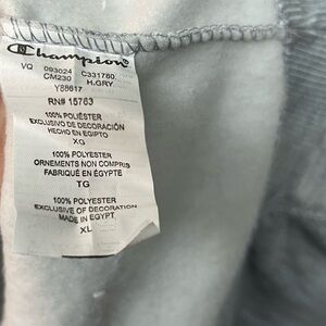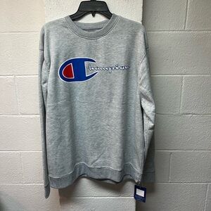 Champion Men's Crewneck Sweater in Gray with Blue Logo. XL