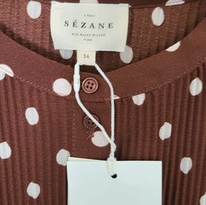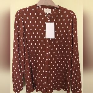 Chic and stylish brown polka dot blouse perfect for any occasion. Features a classic design with a modern twist.
