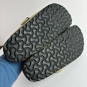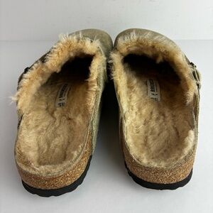 Birkenstock “Boston Shearling” suede clogs. One faint mark on right shoe (see photos) but overall excellent condition.