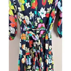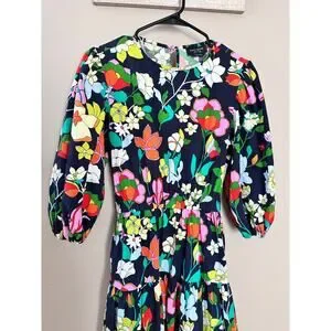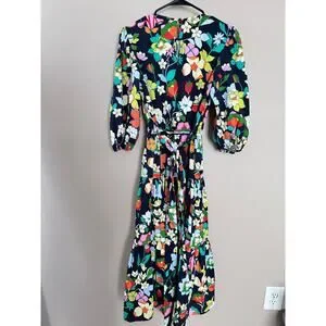 Kate Spade Flower Bed Lawn Floral Midi Dress quarter sleeve w/ belt