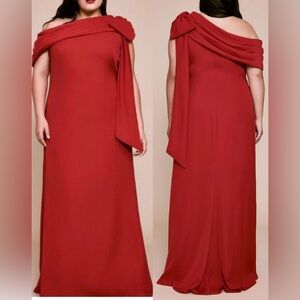 NWOT Tadashi Shoji One-Shoulder Bow Crepe Column Gown Sz 16 red rose