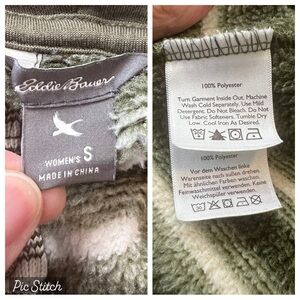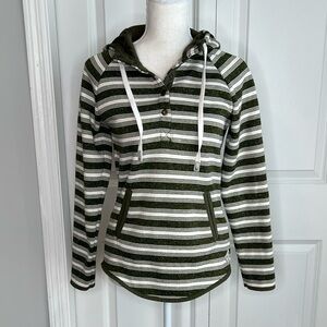 Eddie Bauer Army Green Cream Stripe Radiator Fleece Lined Hooded Sweater Small