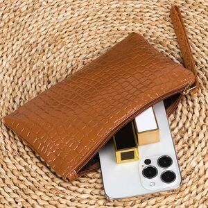 Embossed Brown Wristlet Long Wallet