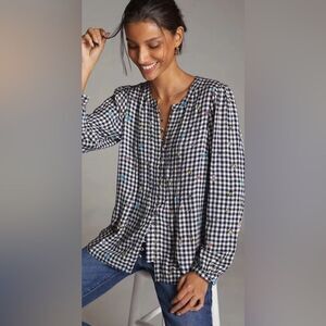 Anthropologie Pilcro Embroidered Desingns Gingham Buttondown Size Small EUC