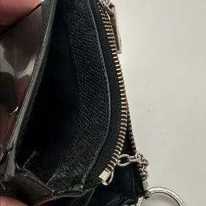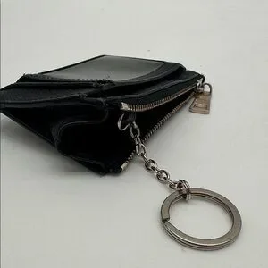 Sleek black Cross Grain Leather Coach ID case. Features Coach logo. Includes keychain attachment. Enough room for a couple of credit cards and bills. Perfect size! Perfect case! Nice preloved condition. BNHIED