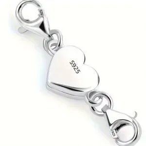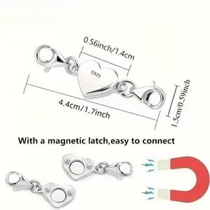 .925 Sterling Silver Heart Magnetic Jewelry Connector Clasp Magnetic Necklace Clasp and Closure Double Chain Necklace Lobster Clasp