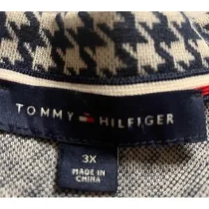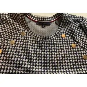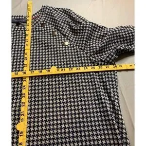 Tommy Hilfiger Houndstooth Dress 3X Gold Buttons 3/4 Sleeve A-Line Navy White