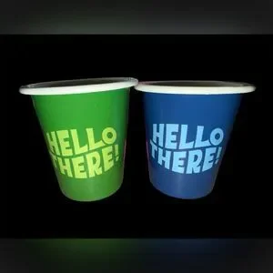 • Design: Features the signature phrase "HELLO THERE!" on each cup.
