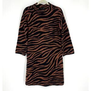 Ann Taylor Mockneck Animal Print Sweater Dress Medium NWT Black Brown Sparkly
