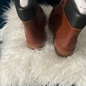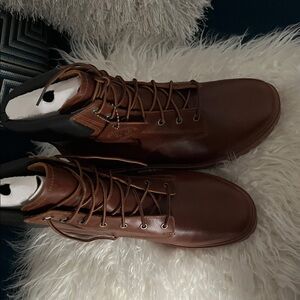 Elegant leather boots with a sturdy lace-up design. Features iconic Timberland logo on the side.