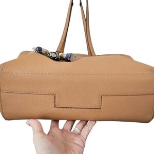 Tory Burch Tan Robinson Tote Bag w/ Extra Bag Charm