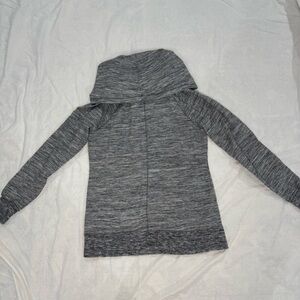 LL Bean cozy pullover, cowl neck sweatshirt, marled gray sweatshirt, athleisure top, lounge sweatshirt, casual pullover, thumbhole sweatshirt, fall winter top, soft knit pullover, women’s activewear
