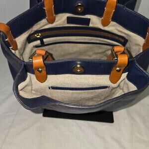 Color(s) / Pattern: Exterior Leather - Dark Navy Blue / Trim: Cognac - Light Brown Color Leather / Light Tan Color
