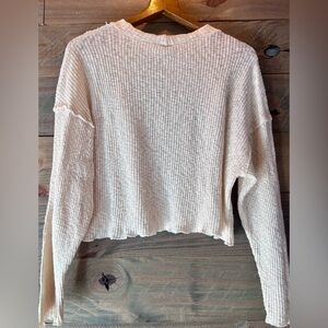 97% COTTON - MADE IN THE USA ! - WARM WHITE MEDIUM VERY LIGHT WEIGHT CROPPED SWEATER -