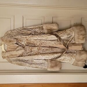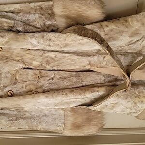Stay warm and stylish with this elegant Rex Rabbit full-length fur coat. Perfect for adding a touch of luxury to your winter wardrobe. it comes with the belt and is in great condition for it being from the 60s!!! I call it the penny coat, haha! it's truly beautiful and a piece of art. fits like a large, but if needed, I will give measurements. very, very soft. keeps you very warm!!!! Was in my grandmother's attic with plastic over it. it's in amazing shape and so excited for whoever buys this!!!! questions? ask below!!!! sooo soft!!!