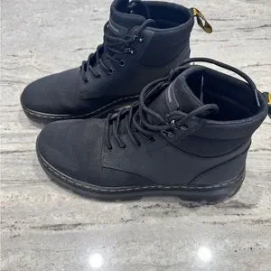 Dr. Martens Black Lace-Up Boots with Yellow Stitching