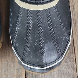 Calf high lace up all weather boot with faux fur detailing, memory foam insoles and non slip traction. Good pre-owned condition. There is some discoloration on the rubber of these. See pictures