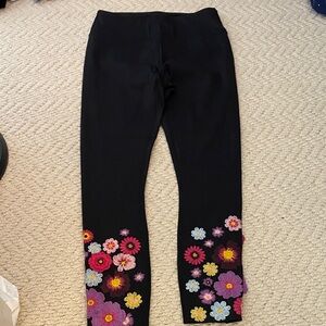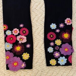 These stylish women’s leggings feature vibrant floral embroidery on a classic black base, perfect for adding a pop of color to any outfit. Never worn. No tags