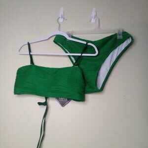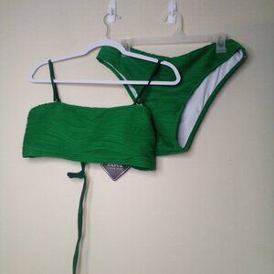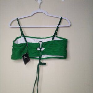 Zaful Swimsuit Bikini Women XL 2 Piece High Rise Ribbed Textured Green
