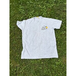 Pedal back in time with this vintage Le Tour de France T-shirt, a tangible piece of cycling history. This heather gray tee showcases the iconic Le Tour de France logo on the front, while the back features a detailed map of the 2009 race route throughout France. The shirt speaks to a time of thrilling races and fierce competition, and with it, you'll be making a distinctive statement wherever you go. Envision wearing this iconic shirt while cheering from the sidelines at a local bike race or enjoying a casual day out with friends, adding a touch of athletic nostalgia to your everyday style.