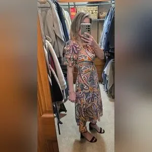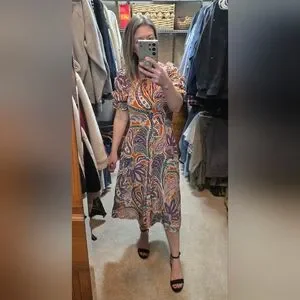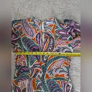 Tyler Boe Womens Dress Size Small Silk Purple And Orange Paisley Puff Sleeves
