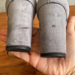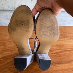 Very versatile charcoal gray velvet heels worn once by me to a wedding recently in a vineyard. I am out of practice in heels but I must say that these were very comfortable and supportive and I feel like it might be the longest I’ve ever lasted in heels. Went beautifully with my dark forest green floral dress. I just know that I have such limited occasions to wear heels and these will just sit around so I’d rather connect them with a new owner. They are a true size 8. I took a lot of photos and video to demonstrate their condition still looks great but I want to make sure buyer notes the toe part where my toes left an imprint. I know your toes would cover that but still wanted to disclose prior to anyone purchasing. 😉✨