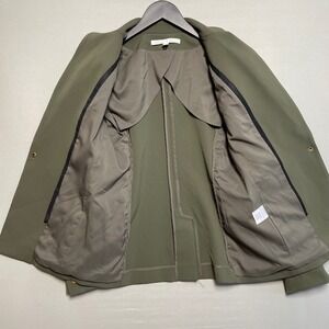 Veronica Beard Scuba Dickey Blazer Womens 4 Olive Green Zip Pockets Gold Snap