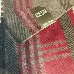 Enrico Milano 100% Silk Gray and Burgundy Scarf NWT
