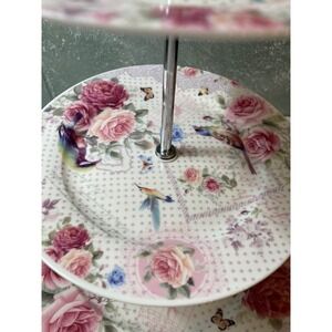 3 Tier Porcelain Serving Stand Birds Roses Lace Design Tea Party Dessert Display