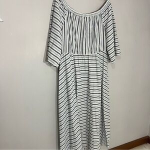 For fans of Eloquii White Striped Half Sleeve Flowy Maxi Dress, Beach Vacay, Cruise, Size 18, Summer Vibes, Tropical Getaway, Resort Wear, Striped Print, Half Sleeves, Flowy Silhouette, Maxi Length, Relaxed Fit, Beachy Keen, Coastal Chic, Vacation Style, ASOS Curve, Lane Bryant, Torrid, Swimsuits For All, Beach Parties, Poolside Lounging, Cruise Wear, Summer Weddings, Garden Parties, Boho Chic, Nautical Inspiration.
