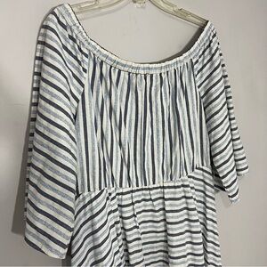 Eloquii blue and white striped flutter sleeve comfy relaxed fit long dress linen blend