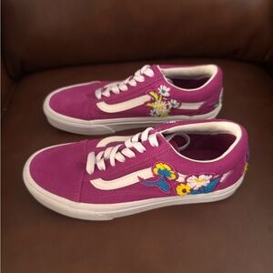 Vans Old Skool Shoes Womens Size 7 Fuchsia Floral Embroidered Sneakers Low Top