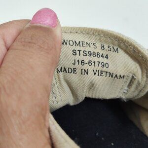 Sperry Top Sider Ivory Beige Sneakers Shoes Women Size 8.5 Leather Laces FLAWS