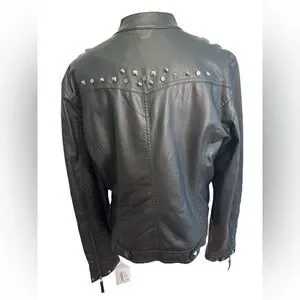 NWT 90s BLACK STUDDED MOTO JACKET ROCKABILLY VEGAN LEATHER JESSICA SIMPSON SZ XL