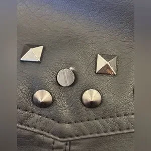 Tags: NWT, Black Studded Jacket, Vegan Leather, Faux Leather, Side Zipper, Moto, Cropped, Punk Rock, Rock and Roll, Rockabilly, Motorcycle, Vintage, 1990s, Jessica Simpson, Grunge, Cool Factor, Edgy Style, Retro Fashion