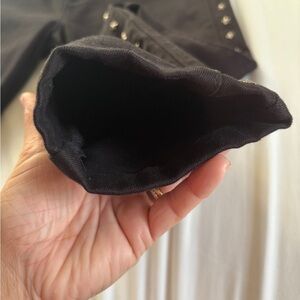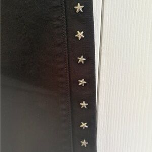 The HUDSON Jeans Luna Mid Rise Black Metal Star Denim Super Skinny Ankle in size 29 is a stylish and trendy pair of jeans for women. These skinny jeans feature a bold black color with metal star accents, a mid rise fit, and a 25-inch inseam.