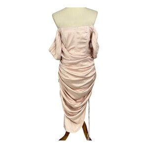 ASOS pink ruched bodycon dress off shoulder cocktail party midi dress baddie