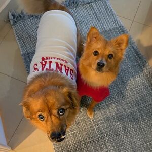 Keep your furry friend cozy and stylish with the Santa's Favorite Dog Sweater. This charming white sweater with red lettering is perfect for the holiday season.