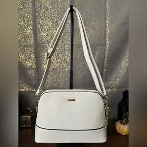 This listing is for a Elim & Paul Dome Crossbody Bag in Chalk. Chic and contemporary, the Elim & Paul Dome Crossbody Bag with Black Trim and Gold Accents strikes the perfect balance between modern edge and everyday elegance! This bag is like-new and doesn’t have any callouts!