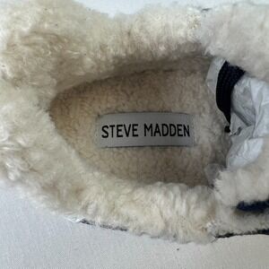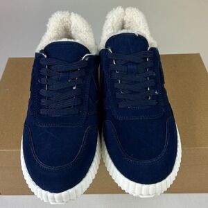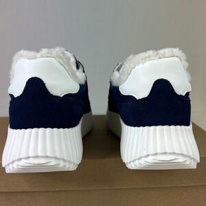Steve Madden Women Shereen-F Sneakers Navy Suede Fur Leather Lace-Up Shoes Sz 7M